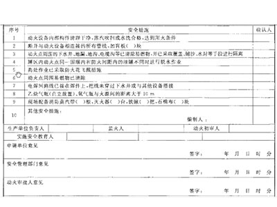 作業(yè)時(shí)審批手續(xù)應(yīng)齊全、安全措施應(yīng)全部落實(shí)、作業(yè)環(huán)境應(yīng)符合安全要求。作業(yè)審批手續(xù)的相關(guān)內(nèi)容參見附錄A和附錄B。