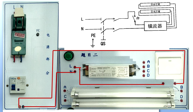 【試題一】兩只雙聯(lián)開關(guān)控制單只白熾燈照明線路