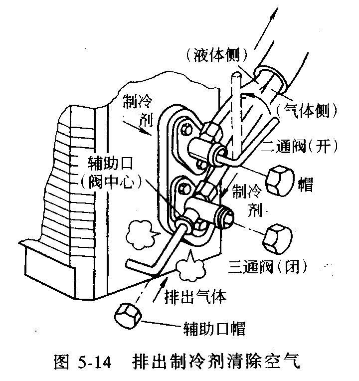 操作方法是:首先使制冷系統(tǒng)抽到一定真空度后,充人20克左右制冷劑,啟動制冷壓縮機(jī)運(yùn)轉(zhuǎn)數(shù)分鐘,使制冷系統(tǒng)內(nèi)的殘留空氣與制冷劑混合。然后對制冷系統(tǒng)進(jìn)行第二次抽真空,使制冷系統(tǒng)內(nèi)殘留的是制冷劑和空氣的混合氣體,從而達(dá)到減少制冷系統(tǒng)內(nèi)殘留空氣的目的。