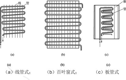 1.鋼絲式冷凝器:采用蛇形復(fù)合鋼管與直徑為1.6~2mm的鋼絲點焊而成