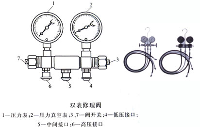 作用:是檢測制冷系統(tǒng)壓力、抽真空、充灌制冷劑的專用工具,分單表修理閥和雙表修理閥兩種。